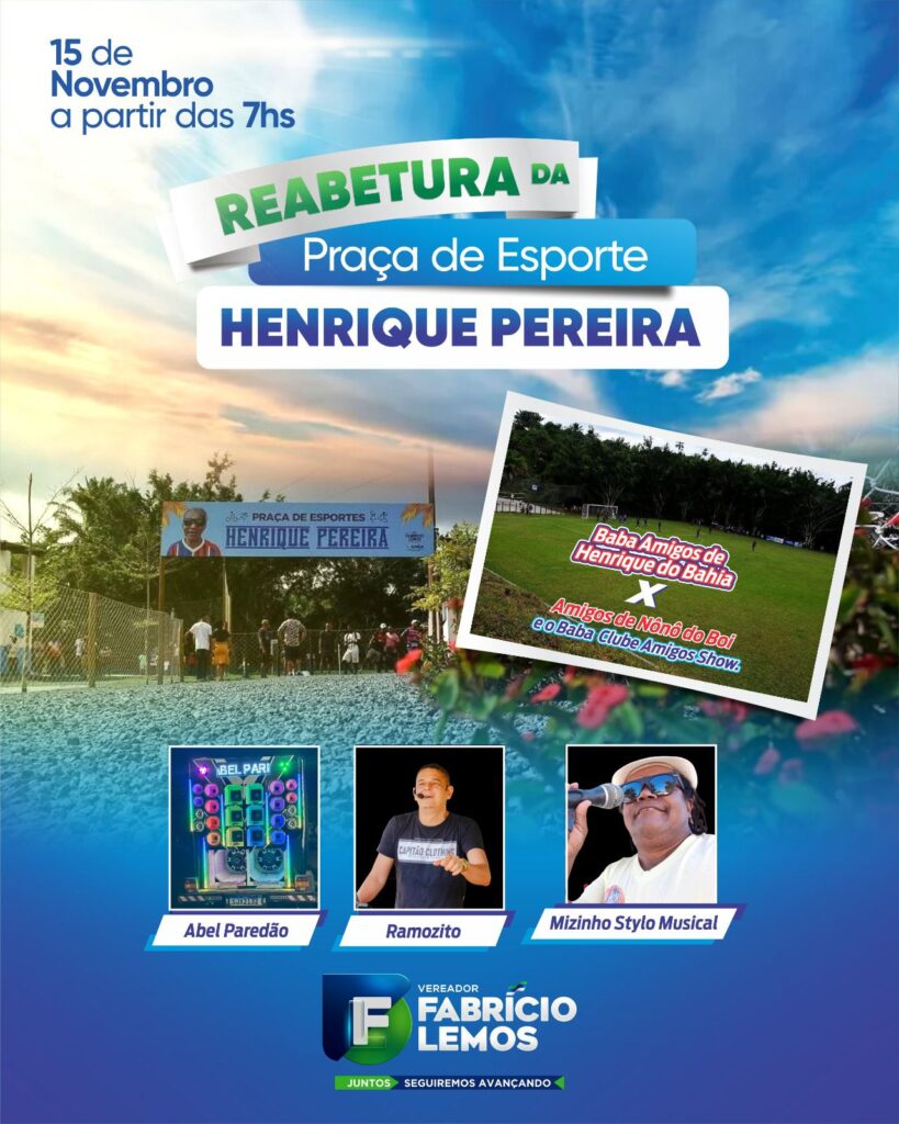 No próximo sábado, 15 de novembro, a partir das 7h da manhã, a comunidade vai celebrar em grande estilo a reabertura da Praça de Esporte Henrique Pereira, um espaço totalmente revitalizado para promover o lazer, o esporte e a convivência.